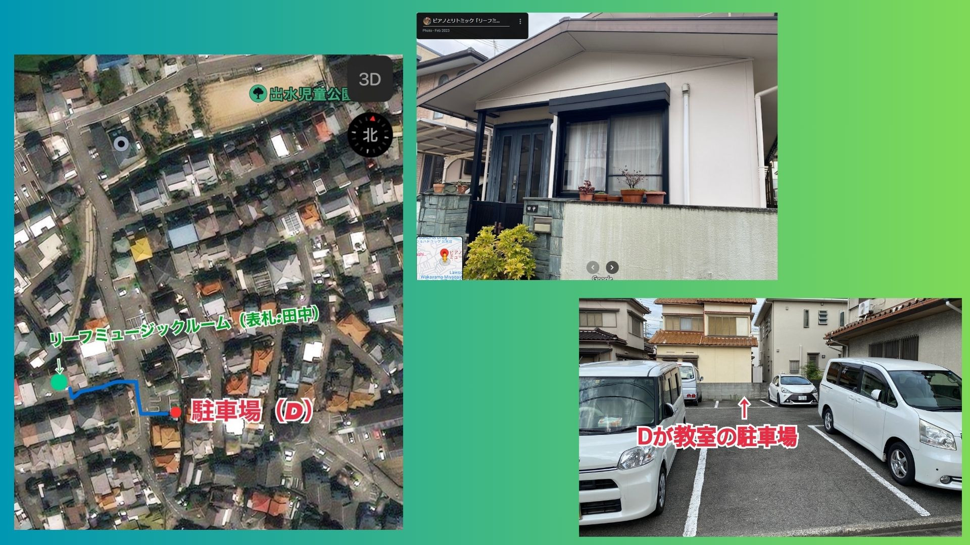 当日、場所が分からない場合は携帯にかけて頂けましたらご案内いたします。